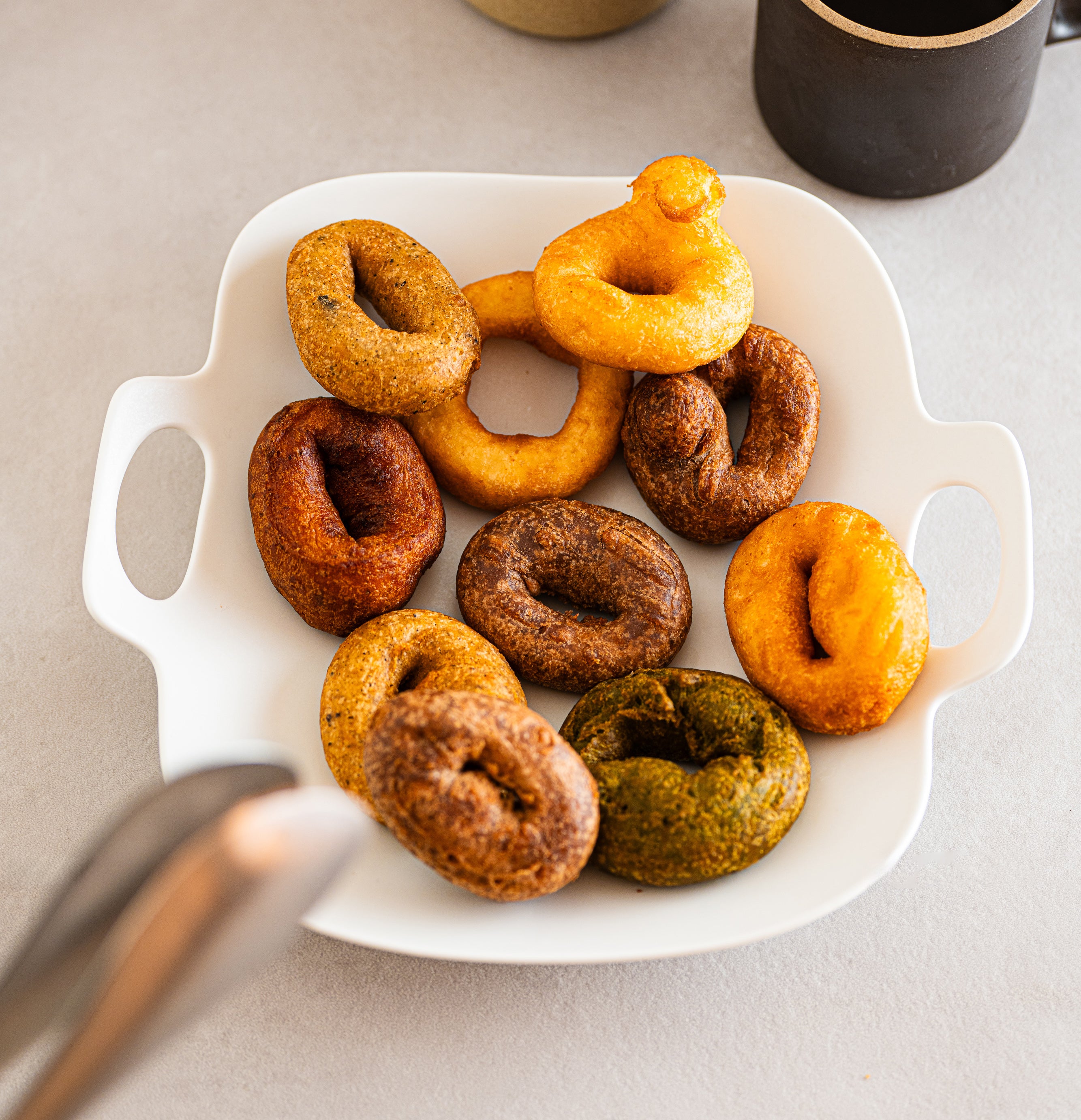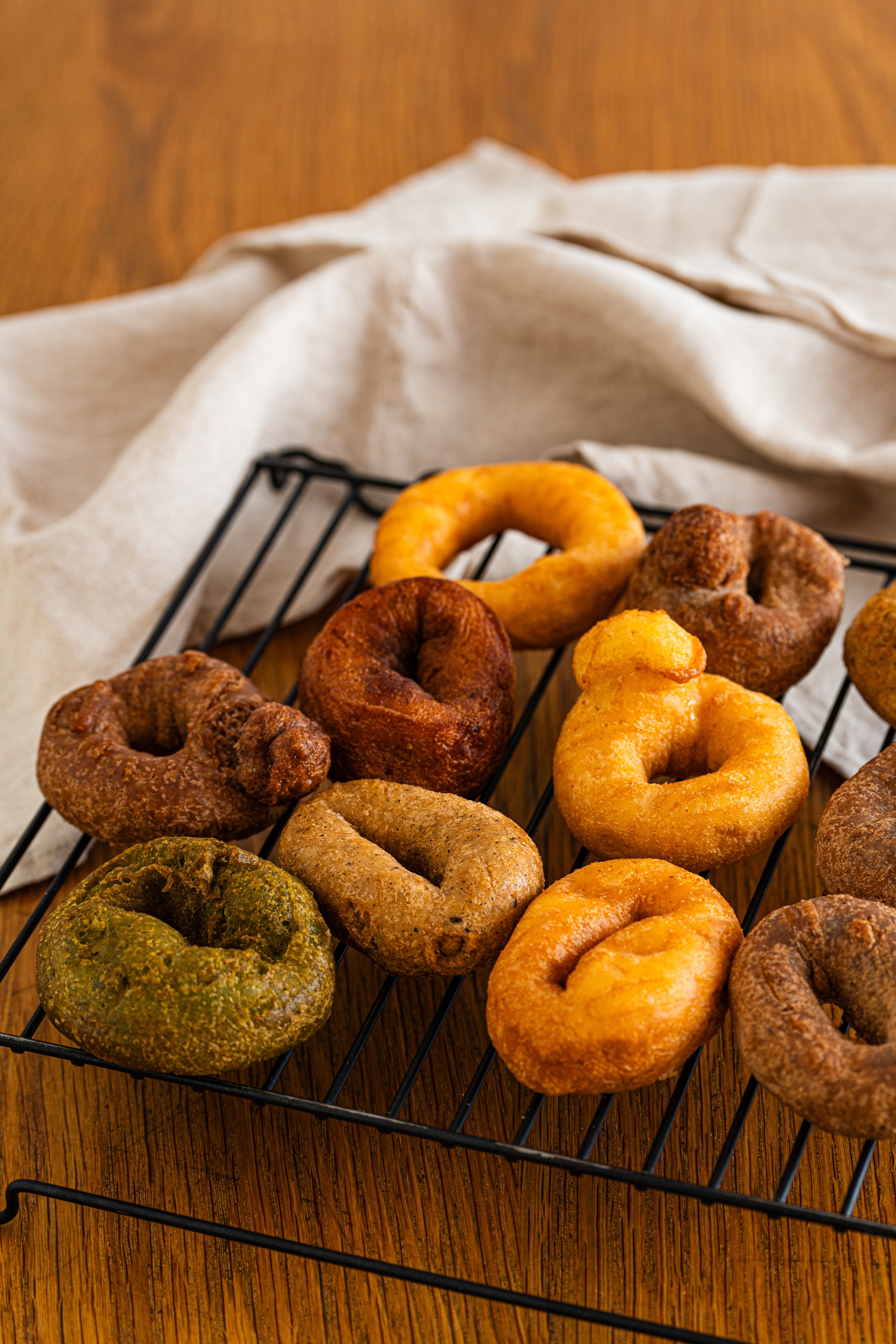 ドーナツ製造過程でできるいびつな形や、規格外サイズ、揚げ色のばらつきがあるものを大体6~7個にして、お値打ち価格で販売しているアウトレット商品です。